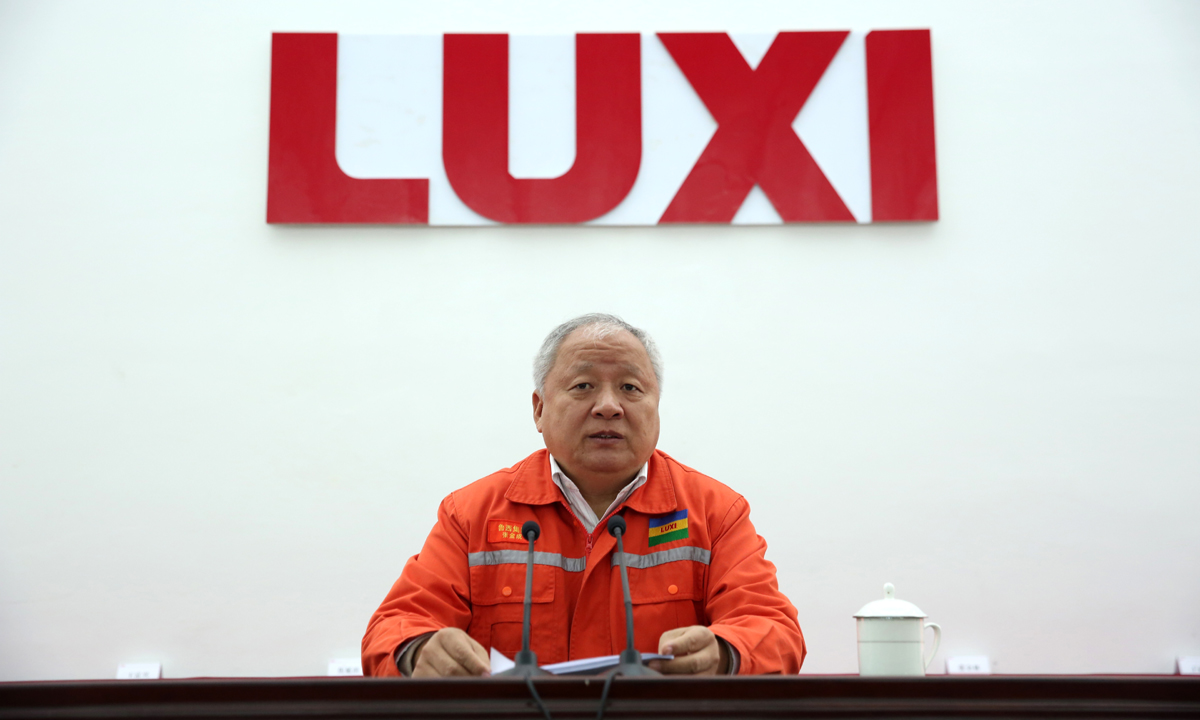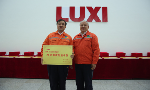 圖為董事長為先進(jìn)單位煤化工事業(yè)部頒獎(jiǎng)。